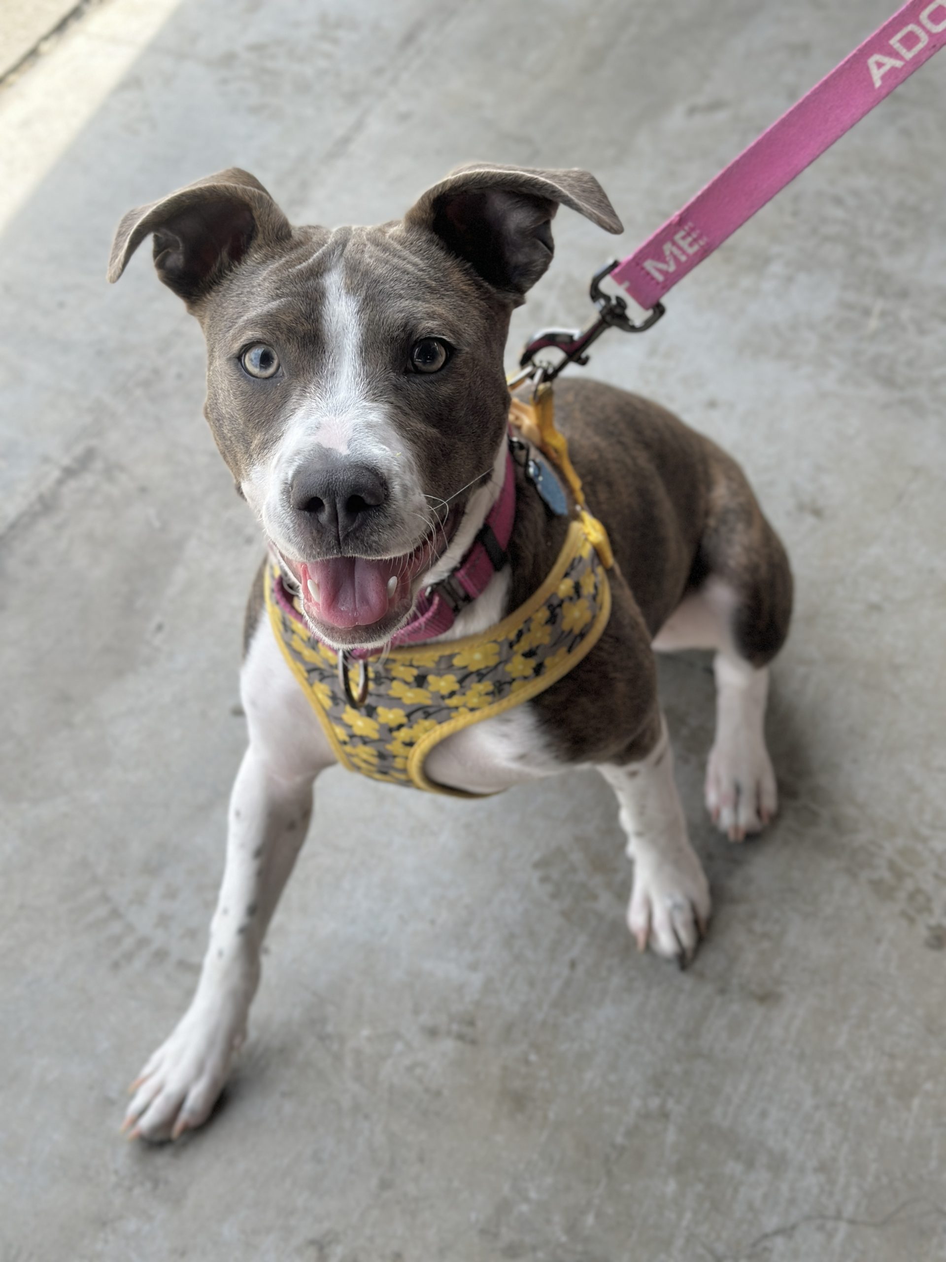 Adeline is growing more confident every day.  She loves attention and affection and has shown a desire to have a play buddy.  She has done well with other dogs of all sizes. She is just a happy-go-lucky playful cuddle bug.