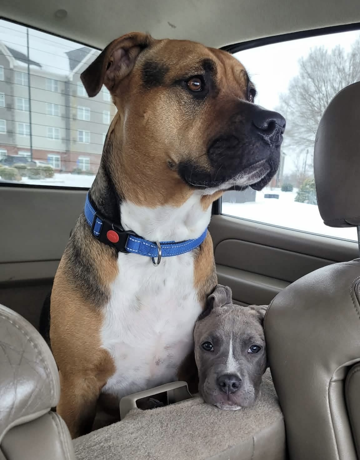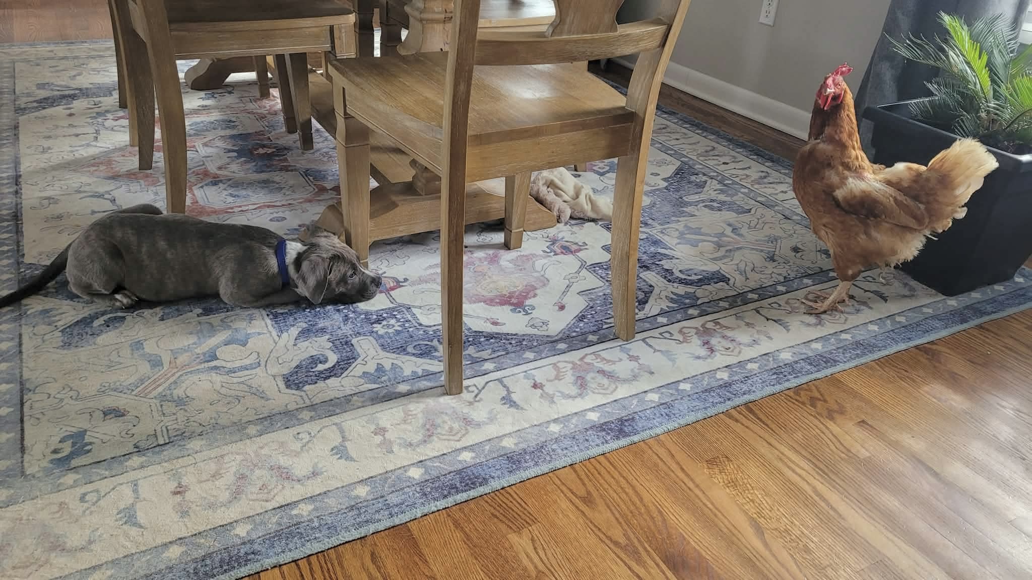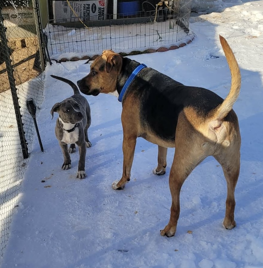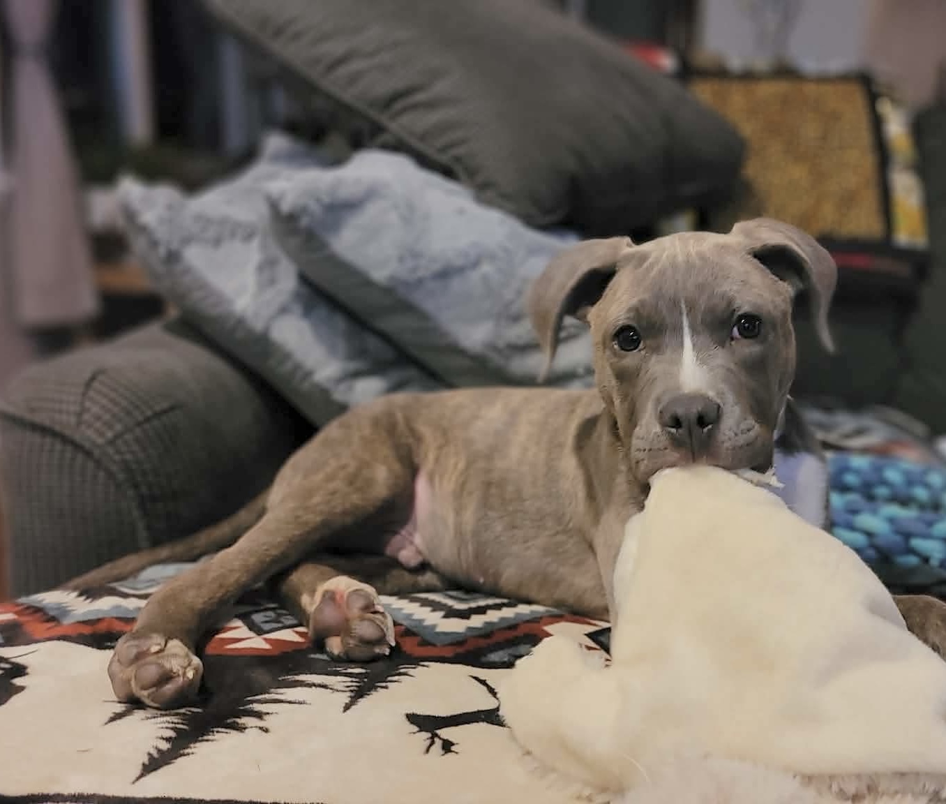 Creed is the definition of a gentle, easygoing puppy who just wants to be near his people and animal friends. He’s incredibly social and does beautifully with all kinds of animals — dogs, cats, chickens… he’s even calm and respectful around bunnies! His sweet, observant nature makes him a joy to have around the house and yard.