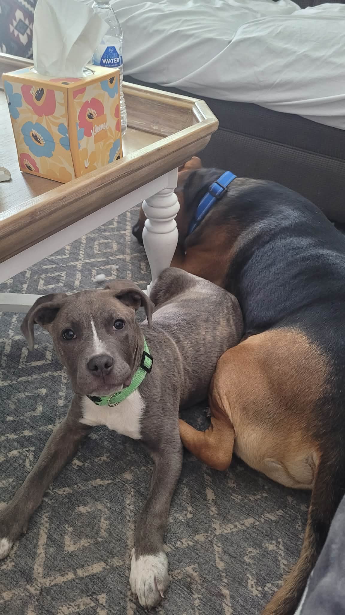 When it comes to routines, Creed is already showing what a smart boy he is. Crate training is perfect — he happily settles in and loves sleeping in his crate. It’s his cozy, safe space. Potty training is still a work in progress (as expected for a young pup), but he’s making great strides — just today he used the doggy door on his own to go outside and poop like a big boy. We love a self-starter!