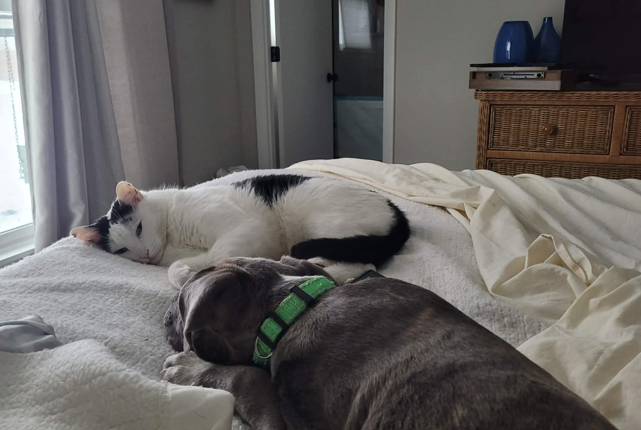 Creed would truly thrive in a home with a canine sibling. He takes so much comfort in companionship and is happiest when he’s near his foster buddies — especially Rowdy the dog or Toby the cat. Whether he’s following them around or snuggling up nearby, he just loves having a friend.