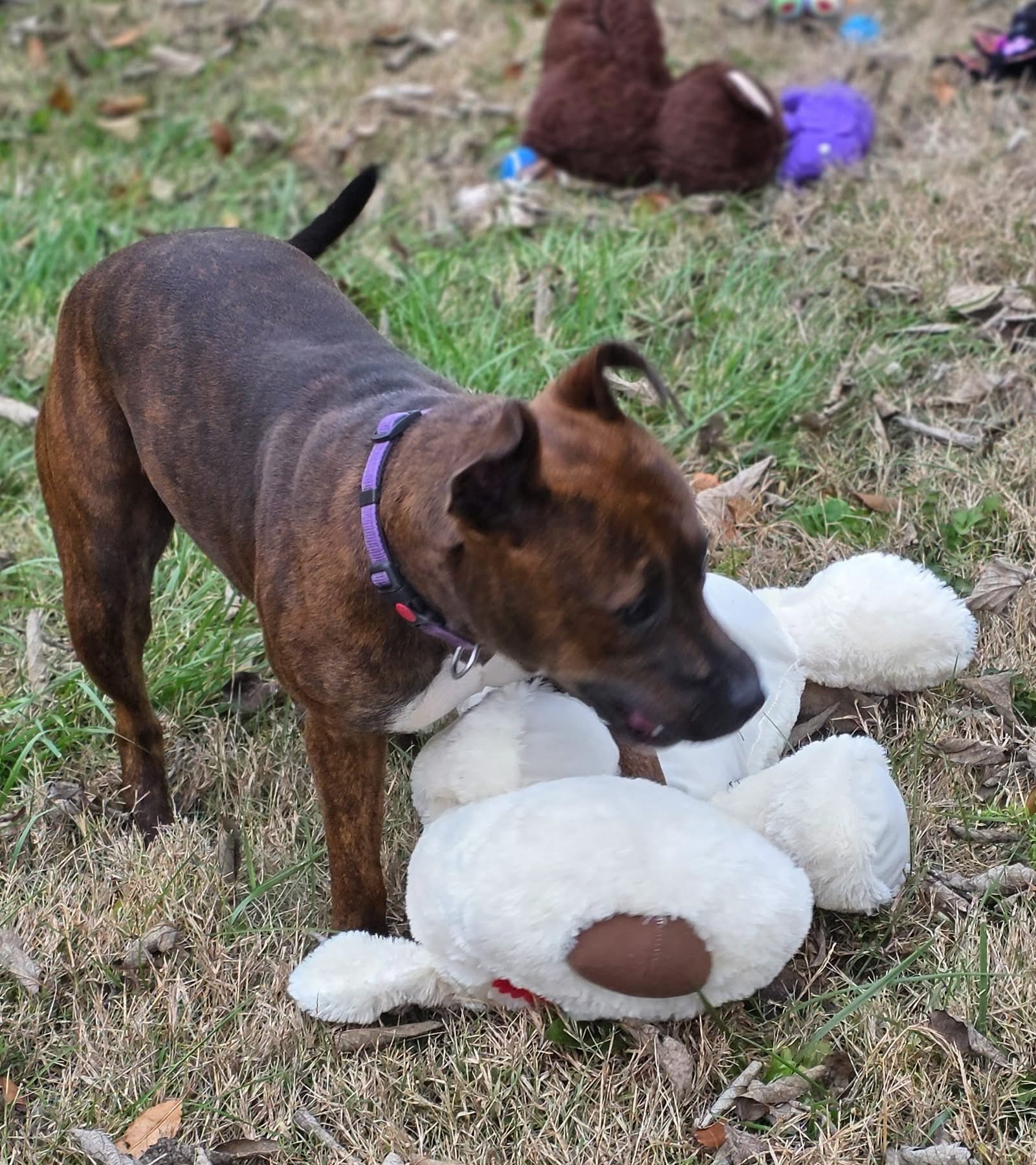 Ella would do best with an active family who will keep her mind and body busy — think hikes, backyard fetch sessions, training games, and lots of interaction. She’s the kind of dog who bonds deeply and gives her whole heart to her people.