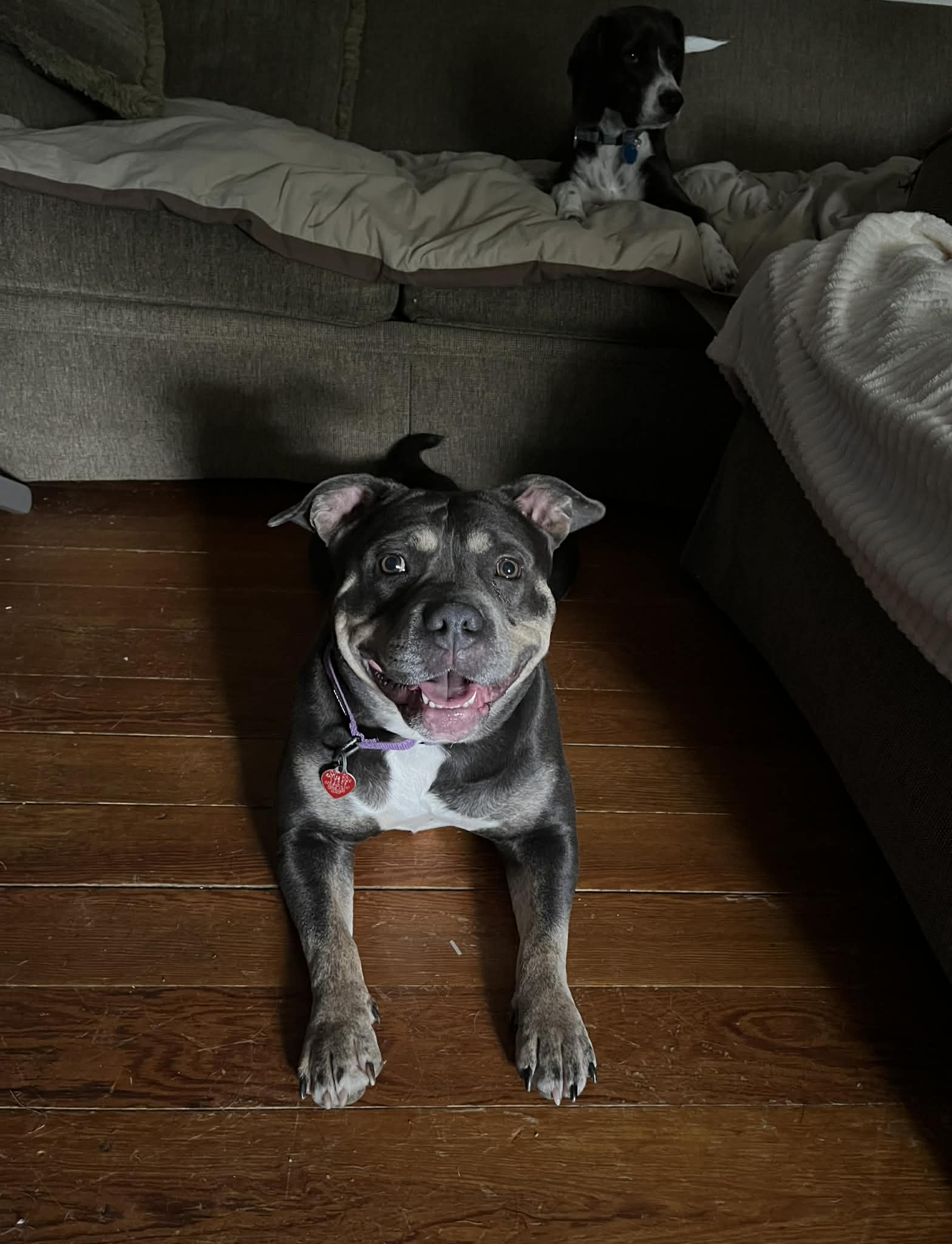 Liz is doing great with housetraining and will reliably use a puppy pad if she can’t make it outside. She’s learning house manners and is eager to please, but her favorite skill by far is professional-level couch snuggling. If you’re sitting down, she’s already planning how to join you. She’s calm, loving, and endlessly affectionate.