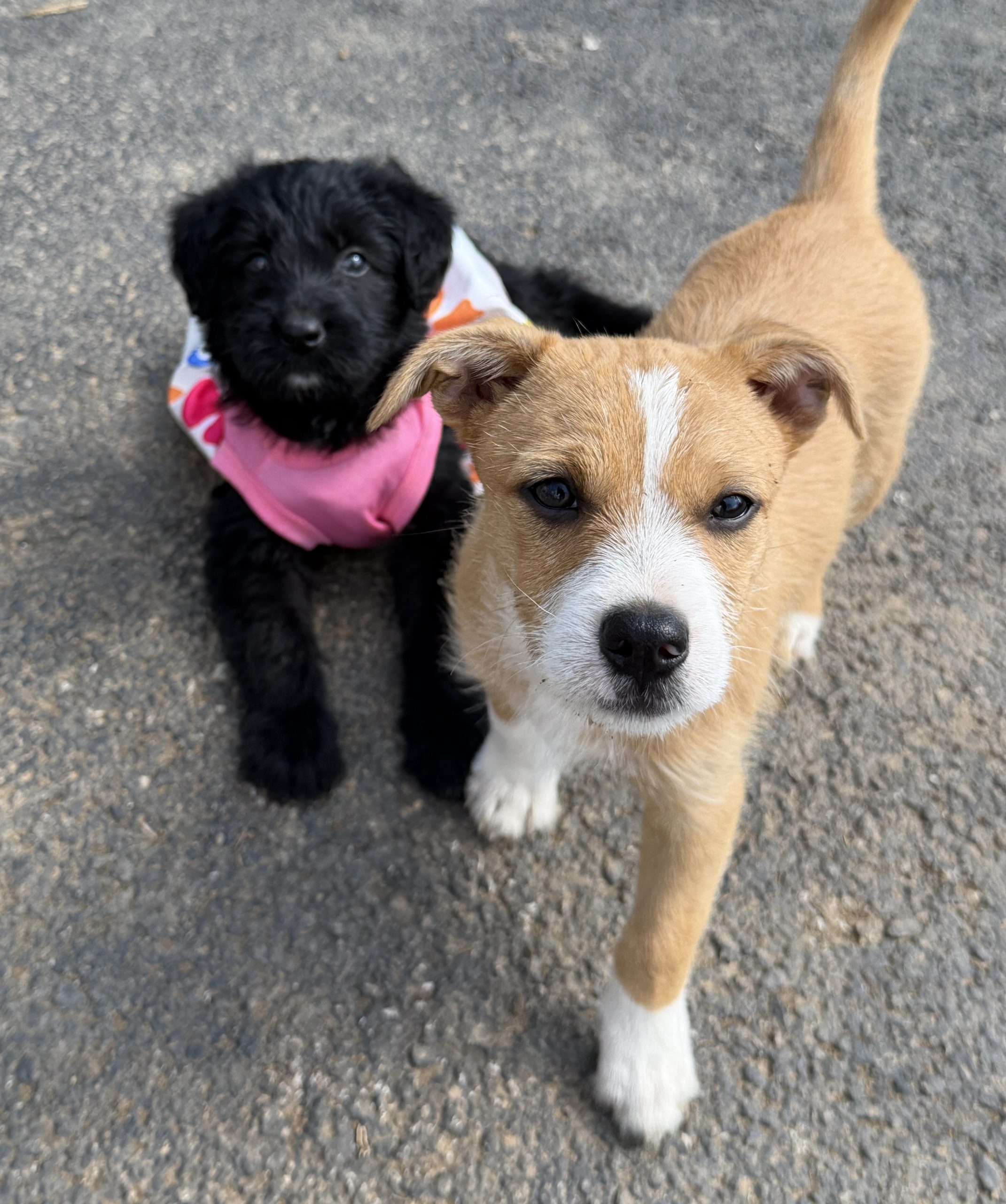 These pups will complete their vet care (spay/neuter, final vaccines, microchip) on April 16th and can go home soon after. Our puppy adoption fee is $300. If you're interested in adopting, please submit an application at savedbyfate.org and we'll be in touch ASAP!