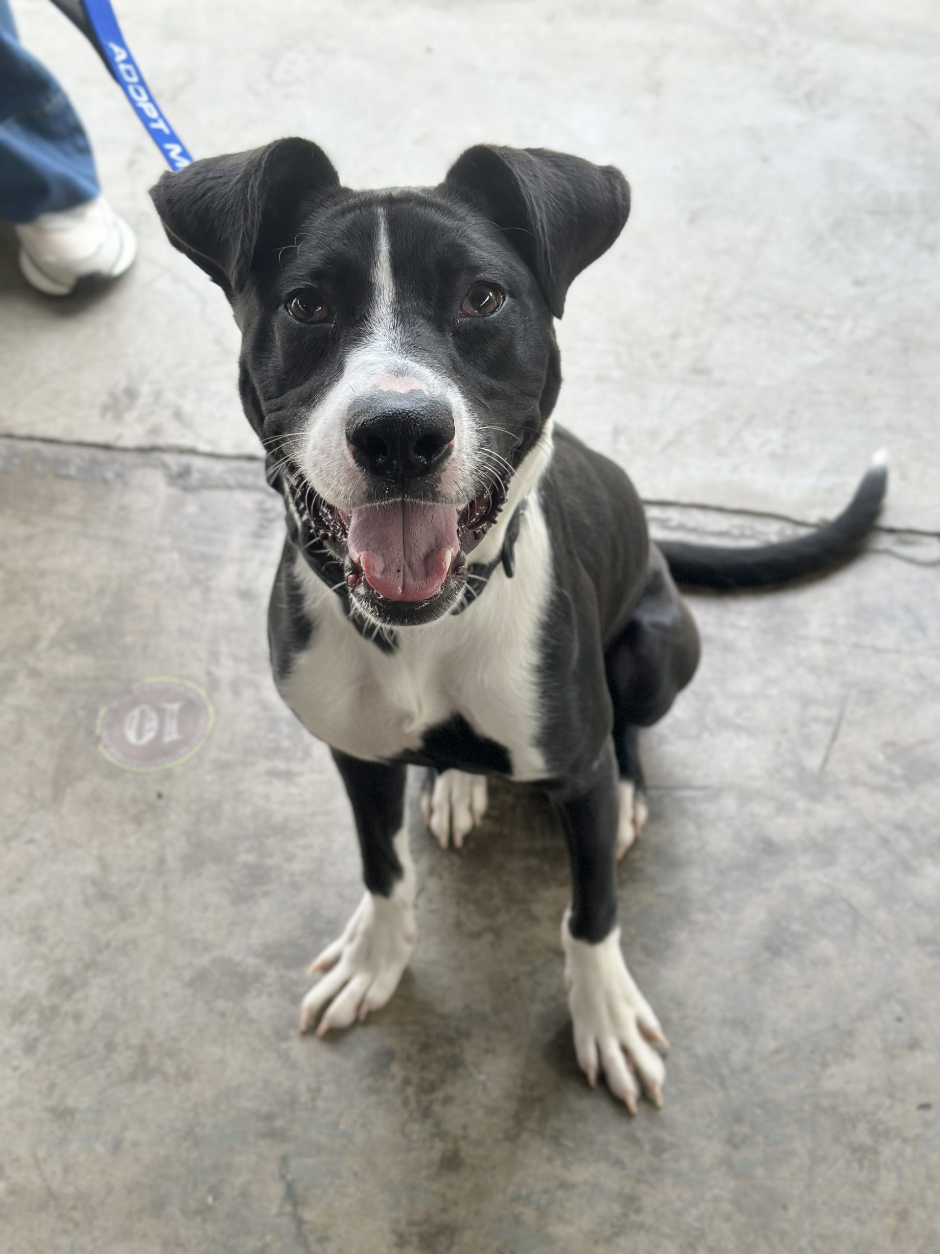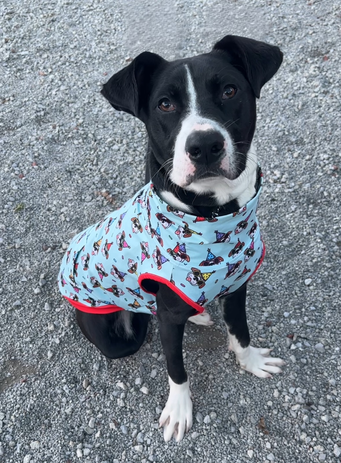 His foster mom is working with him on potty training, socializing and not jumping when he gets excited.