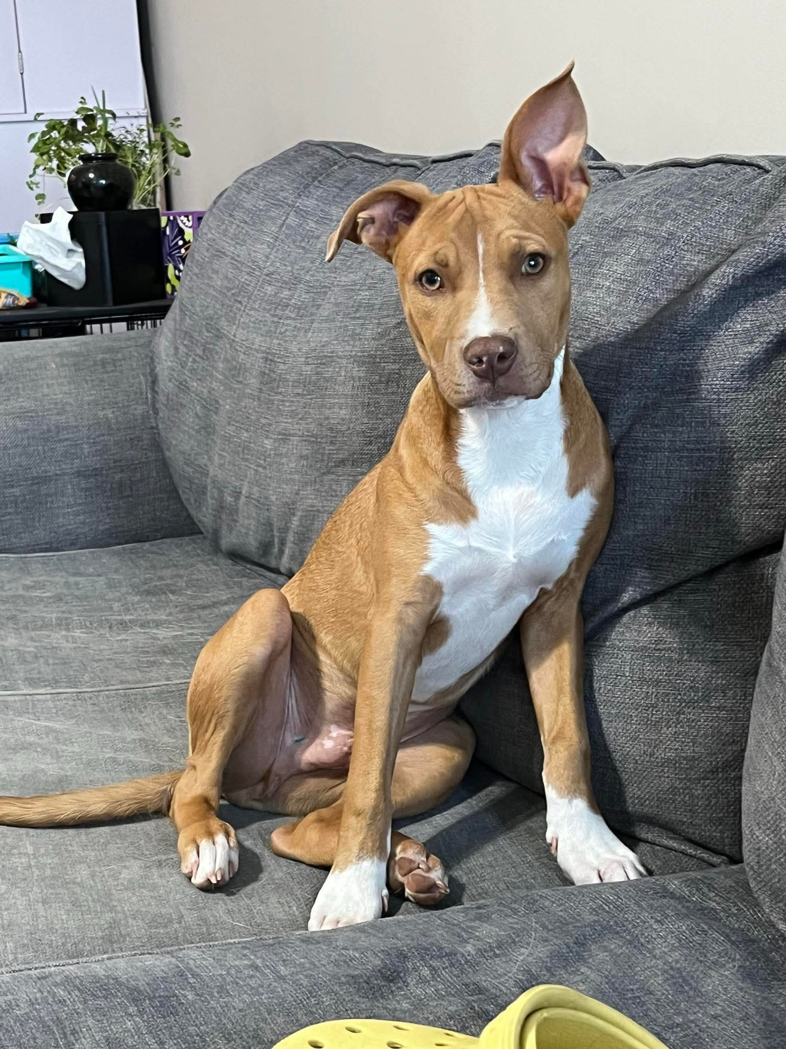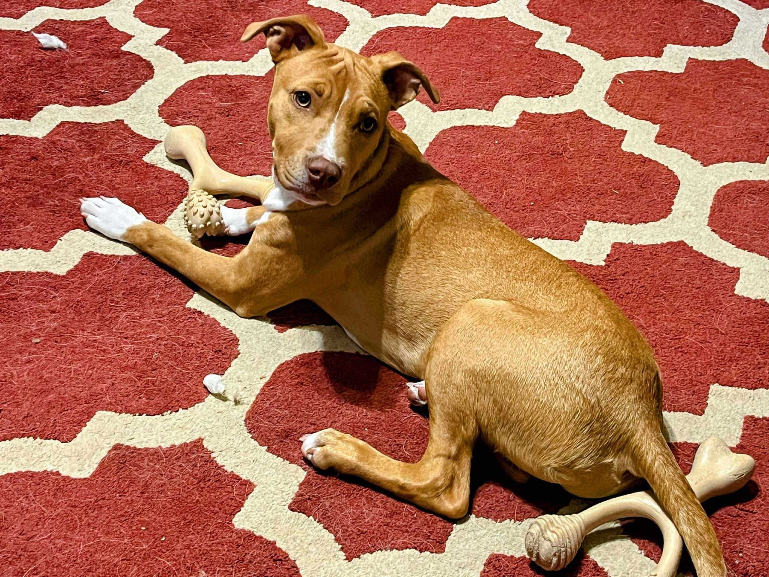 Rowan is an active, cuddly pup looking for a fun forever home with at least one other playful dog! He has learned good house manners (except for the occasional stray shoe) and loves to find a toy to strut around the house to show off. He loves to play fetch and tug-a-war, but keep away is the best game of all. But when all the fun and games are over, he loves to curl up against (or on top of) another pup or human for a nap.