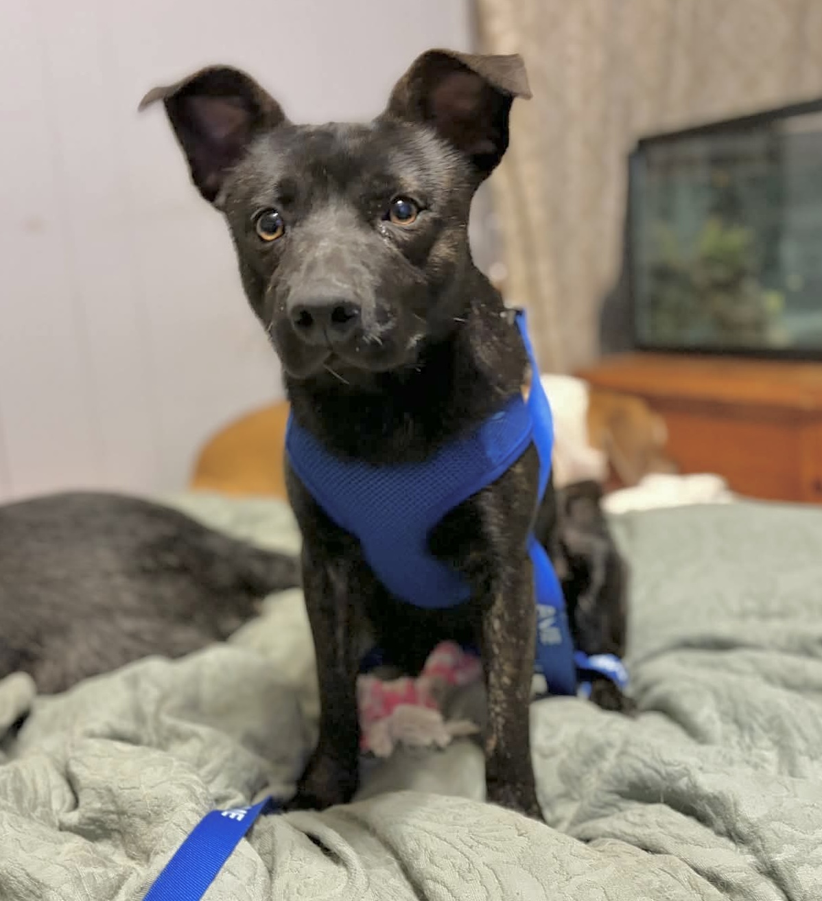 Theo may start out a little timid, but with patience, love, and a playful dog buddy, he’s sure to grow into the ultimate couch cuddler and loyal companion. If you’re looking for a smaller pup (26 pounds) who will bring laughter, sweetness, and a little extra joy to your home, Theodore might just be your perfect match.