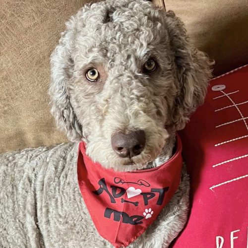 This handsome boy is bursting with personality, joy, and affection. He’s happiest when he’s close to his people and will make a loyal, loving companion for a family who can give him the time, structure, and play he craves.