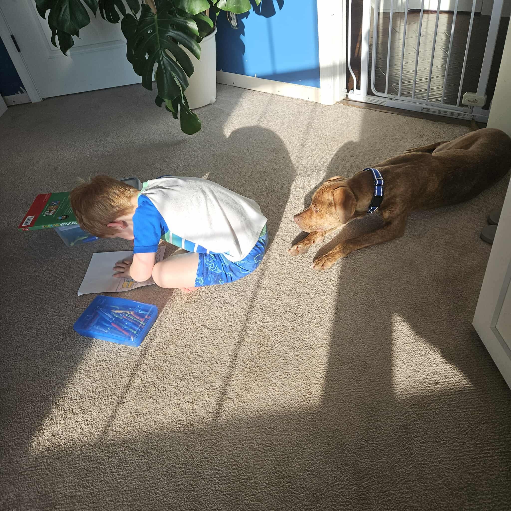 Winston loves everyone he meets — people, kids, and dogs alike! He’s even good with cats, though he might try to convince them to join in on his games.