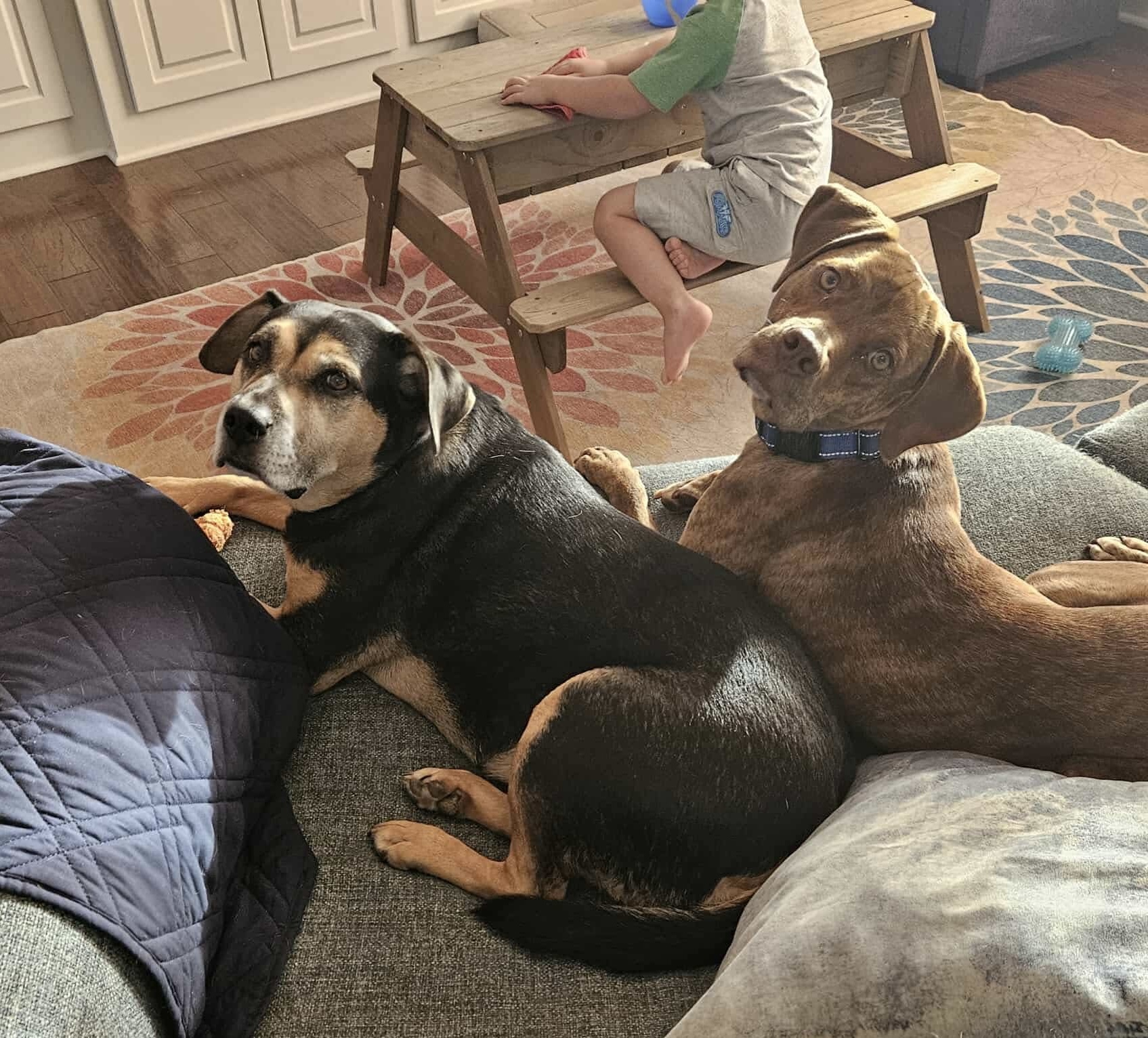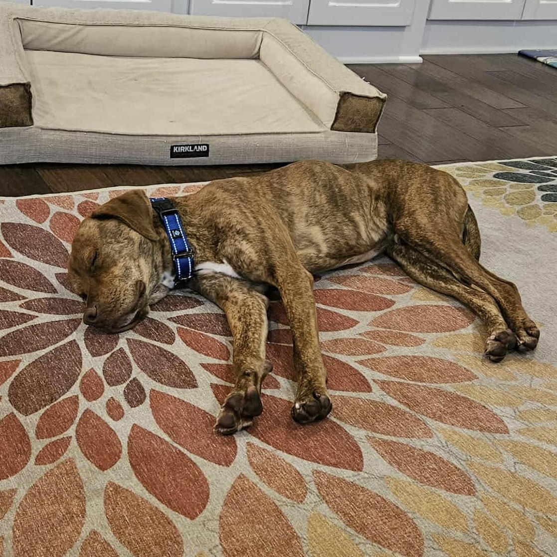 He’s also the ultimate “Velcro dog” — he wants to be right by your side no matter what you’re doing. Whether you’re on a hike, working in the yard, or cheering on the sidelines at a kids’ soccer game, Winston will be there, tail wagging and ready for fun!