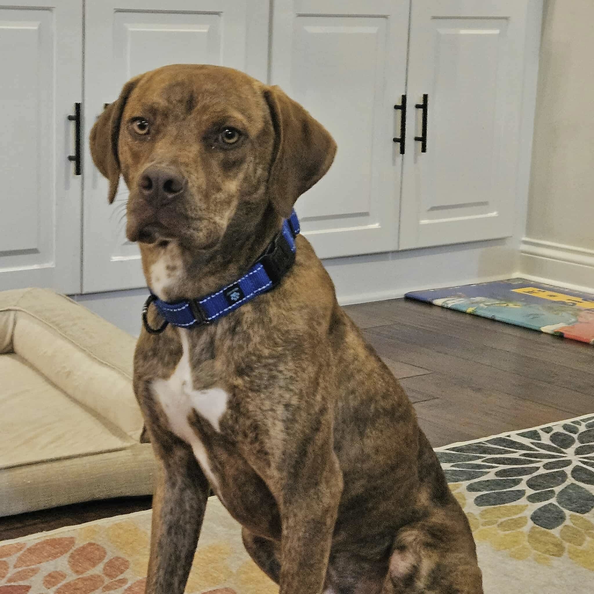 This handsome guy, Winston, is about a year old, potty trained, and crate trained (though he might give a few whimpers for the first few minutes just to let you know he misses you).