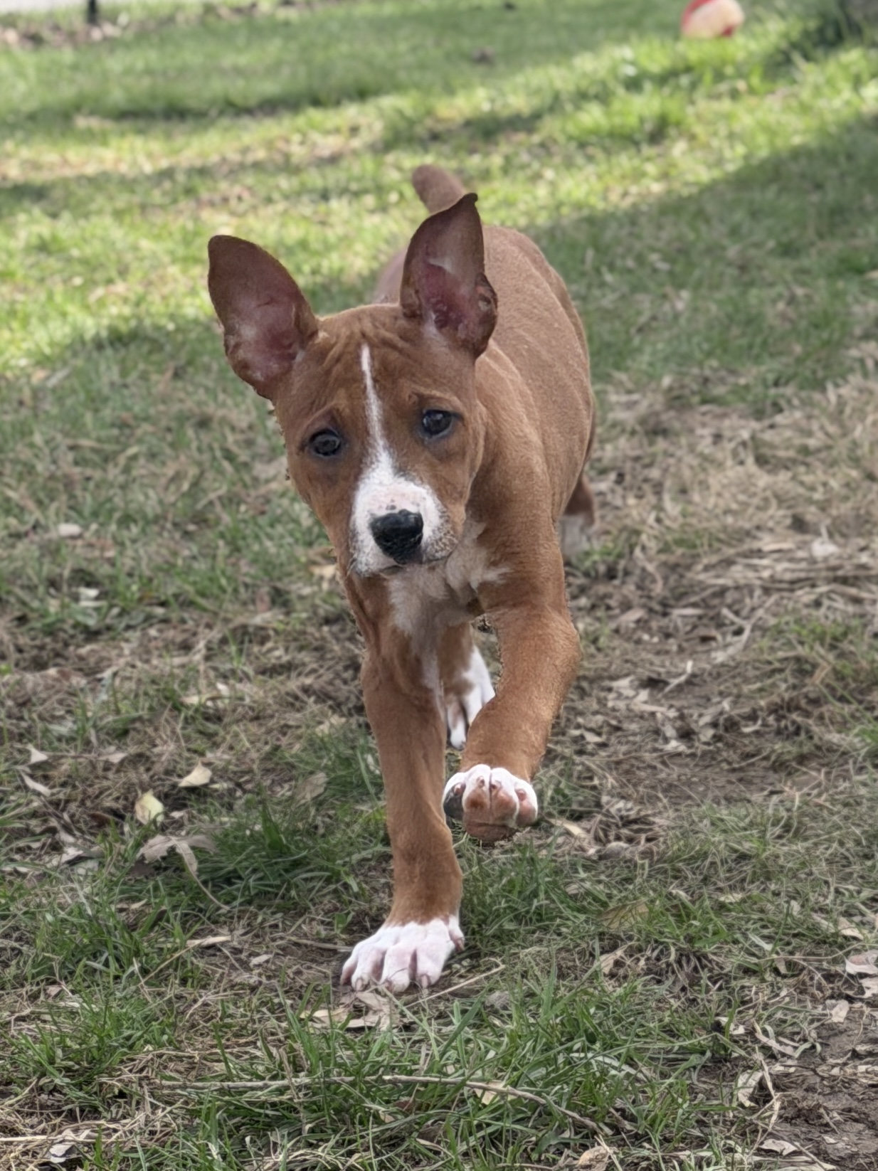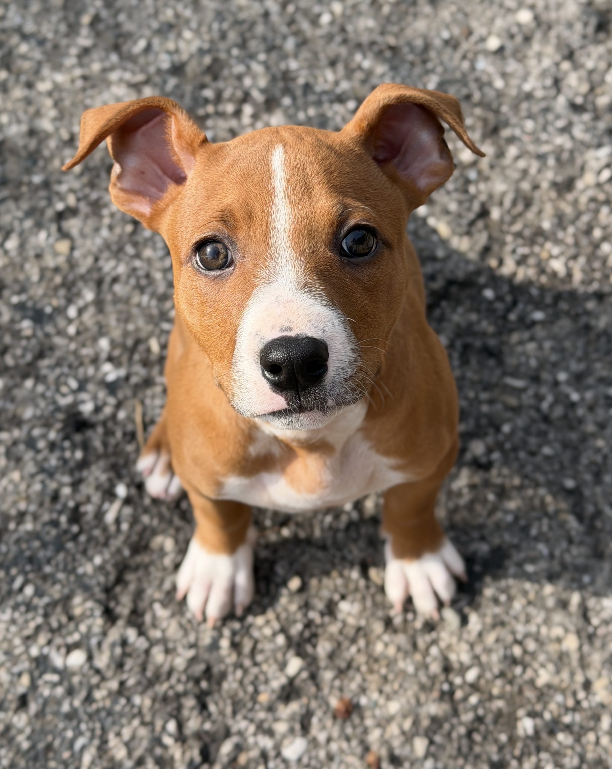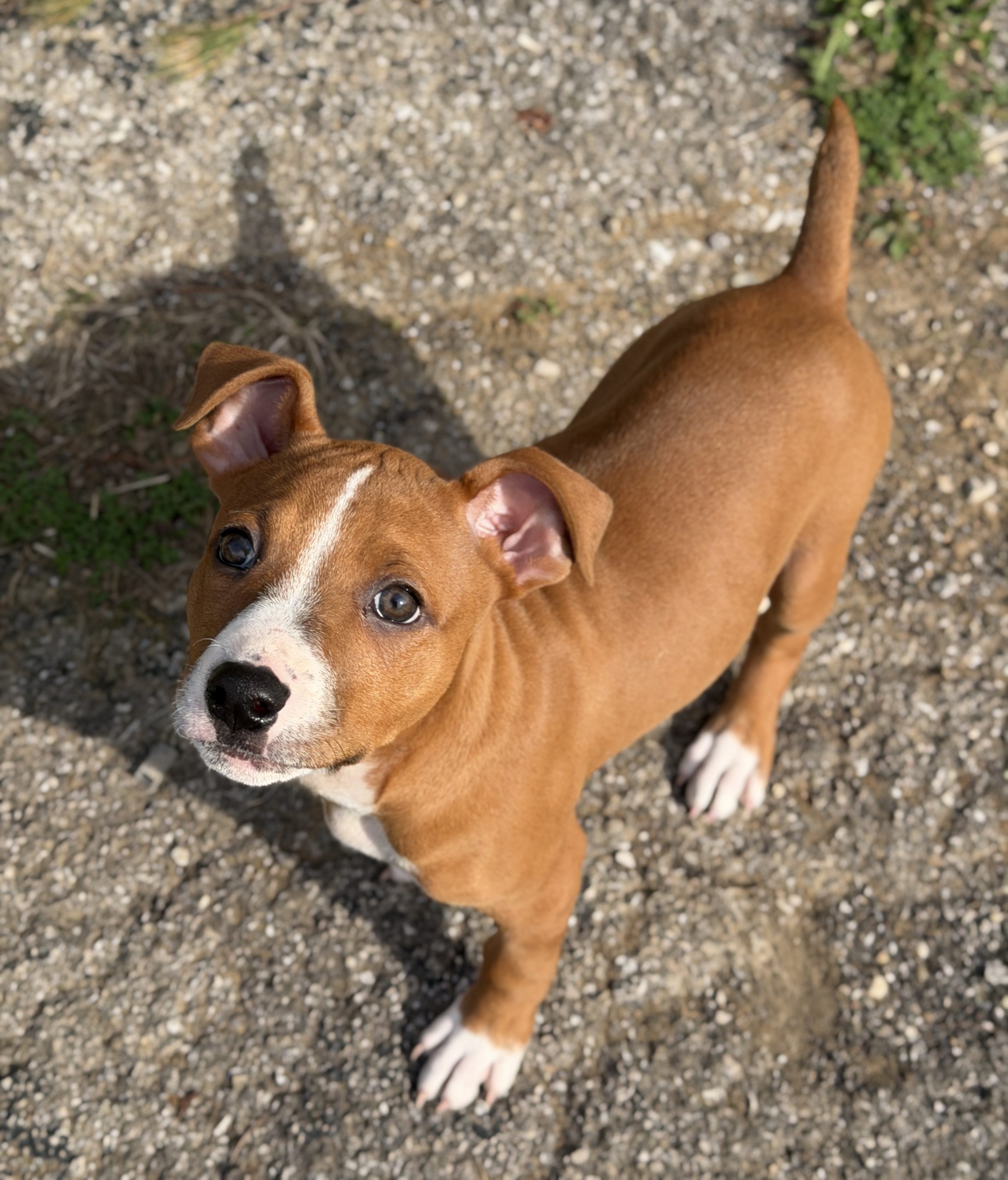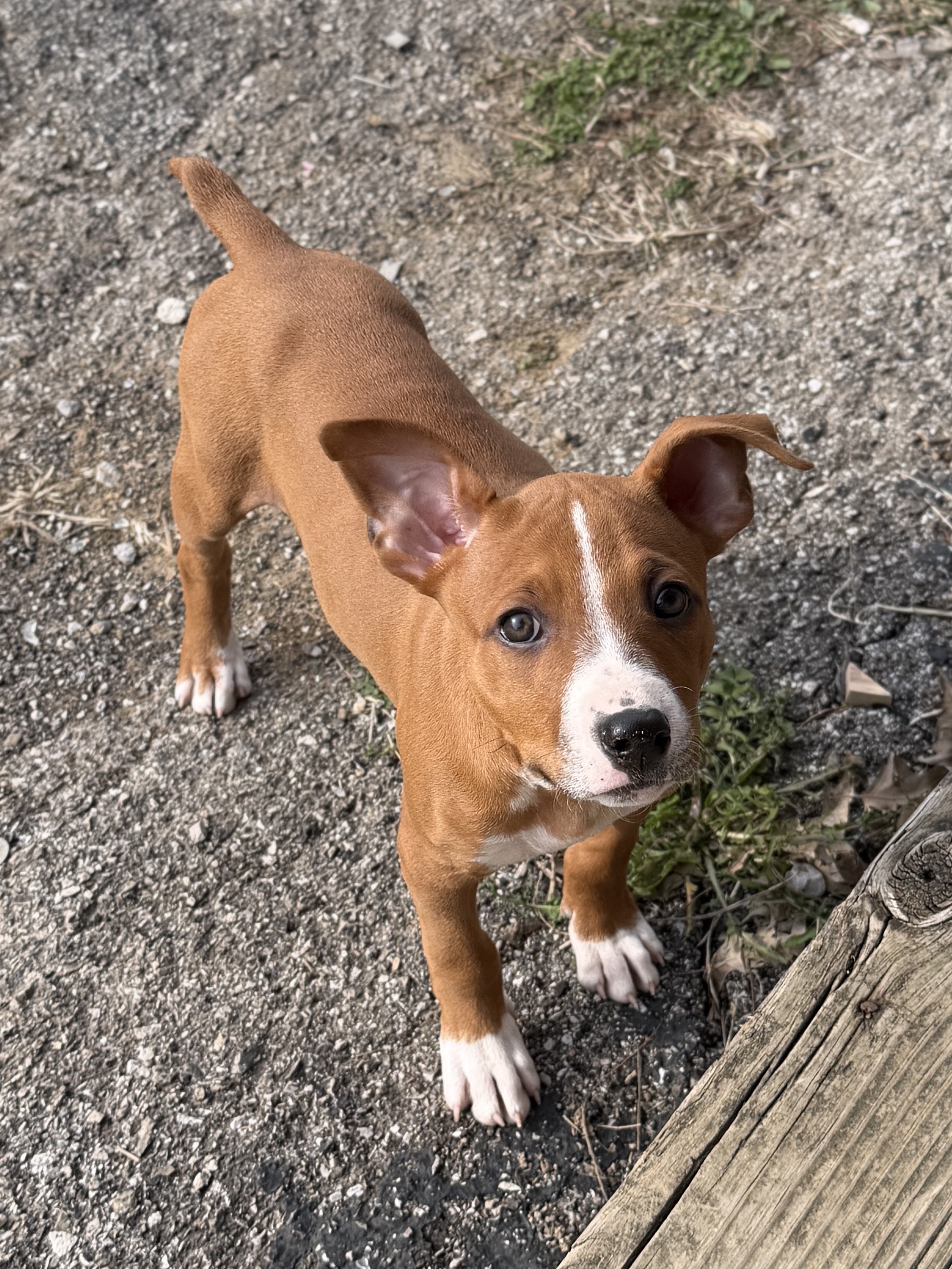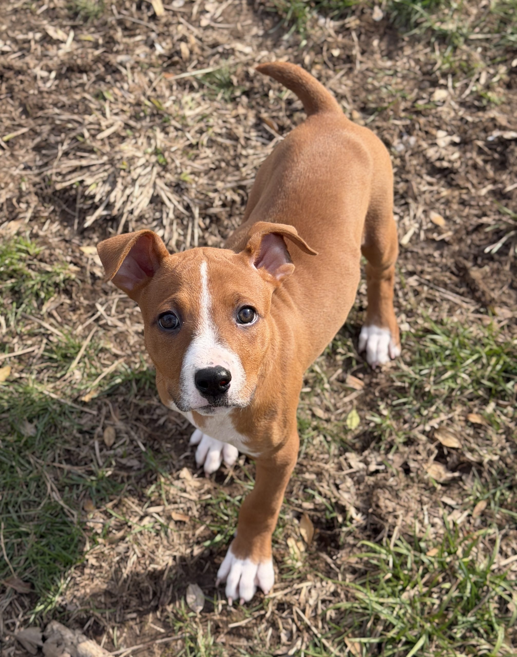 Zoey is a possible Boxer mix. She and her siblings lost their mother during a winter storm, but landed themselves in a warm foster home to learn how to be the perfect companions to their future families.