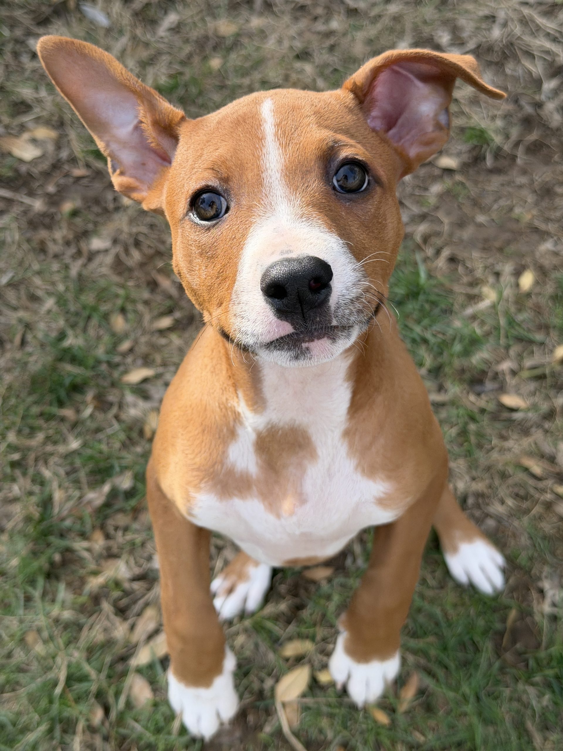 She is doing very well with the cats in her foster home and is getting better on potty training every day! She loves spending her days alternating between naps and playing with her littermates and the other bigger dogs in the house. She’s a curious, gentle soul who is very eager to meet her forever family.