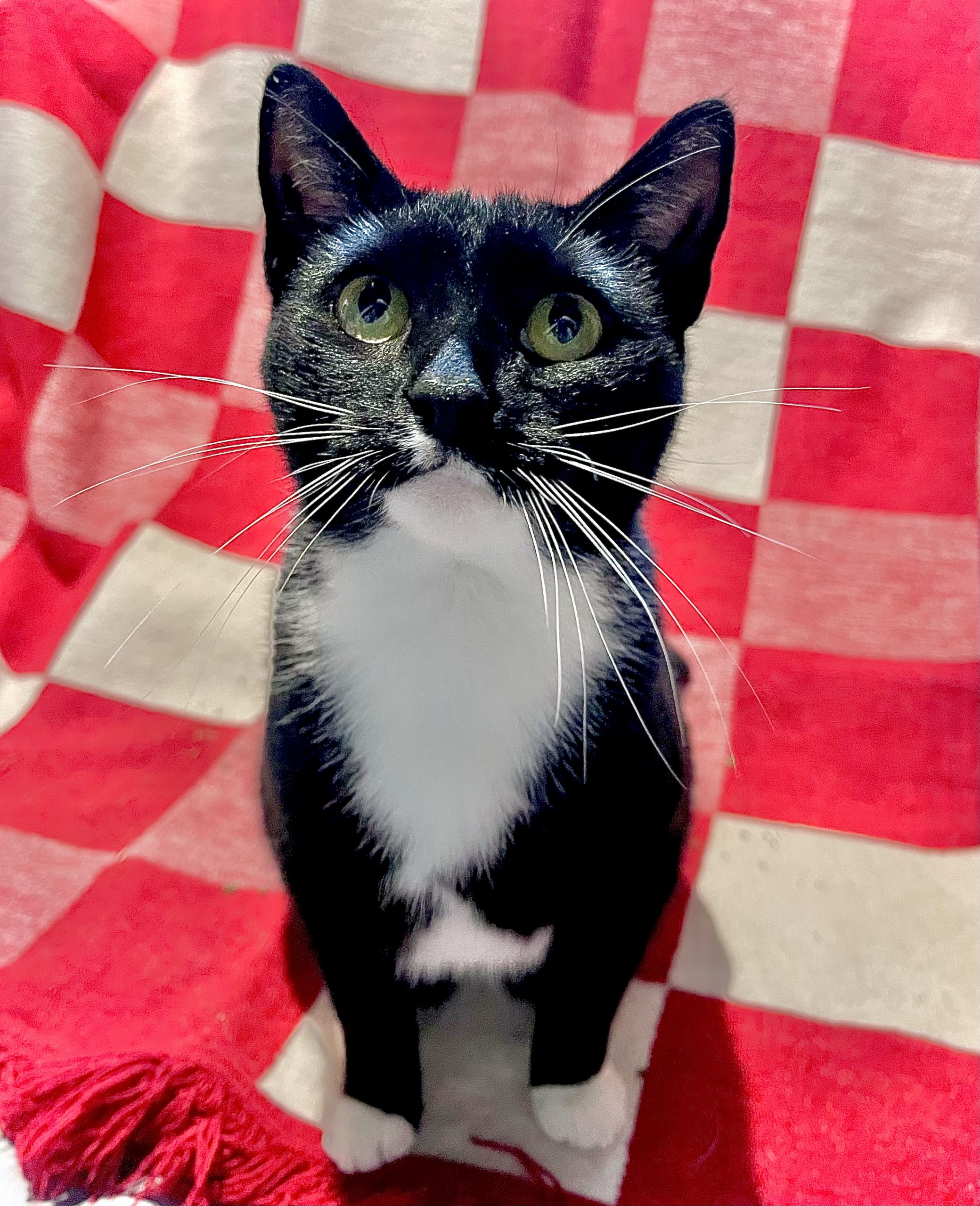 Slinky is a sweet and affectionate cat who loves being the center of attention. She’s quite vocal and will happily chat with you until she gets the pets she’s looking for. While she doesn’t enjoy being picked up, she adores spending time near her people and will thrive in a home where she can be showered with love. She is on the smaller side!