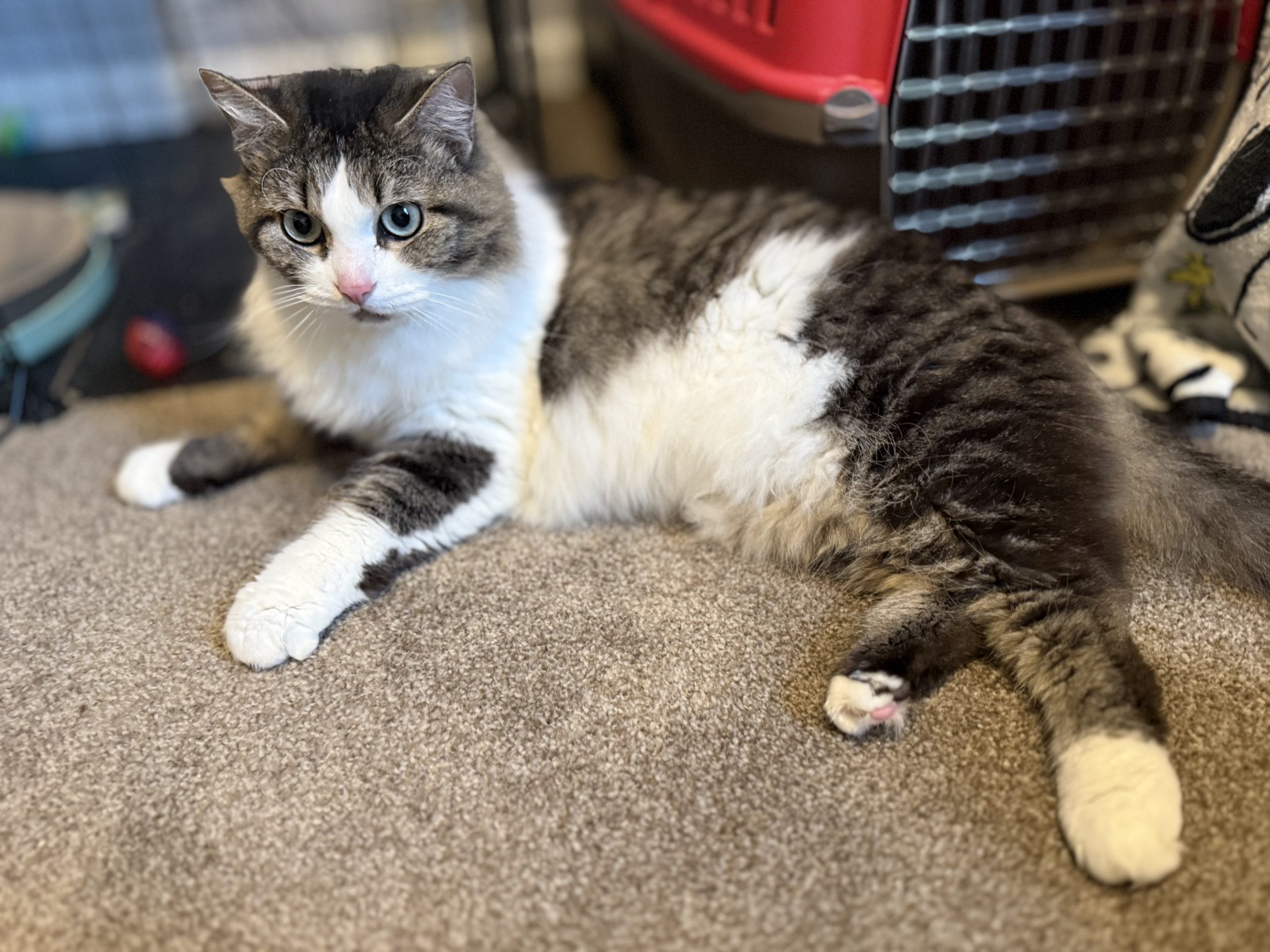 Willow loves nothing more than being close to her humans and soaking up all the cuddles she can get. She’s still settling into her foster home and learning to adjust to life around other animals. We have learned that Willow would prefer a home without dogs, but she does warm up to other cats. She may be a bit fearful of young children, so children over 10 years old are preferred.